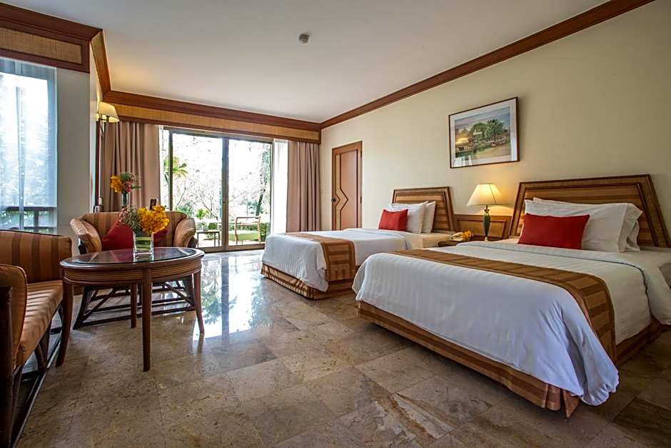 On-site dining centers around Maneechan Kitchen, a family-friendly, traditional spot where American and Asian flavors mingle for a crowd-pleasing menu. Two sun-kissed outdoor pools keep stays lively or laid-back, with an adults-only pool for grown-up pool time and a separate kids-only pool for little splashers.